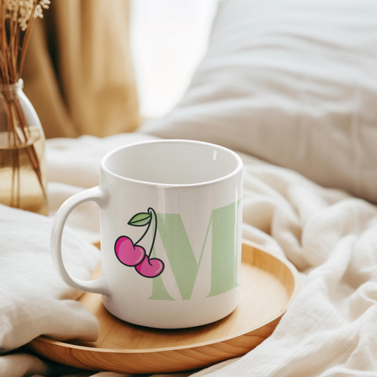 Monogram Ceramic Mug with Cherries